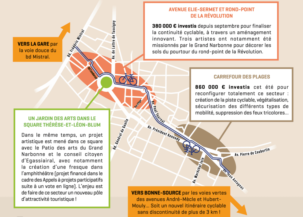 C’est un vrai choix politique. Après l’immobilisme du précédent maire, qui avait peur de choquer son électorat, le nouveau maire se tourne résolument vers l’avenir. Narbonne est à la traine en matière de mobilité cyclable. Les nouveaux habitants ne retrouvent pas les infrastructures dont ils bénéficiaient dans leur précédente ville. Narbonne doit changer, et ses habitants changer leurs habitudes.