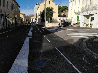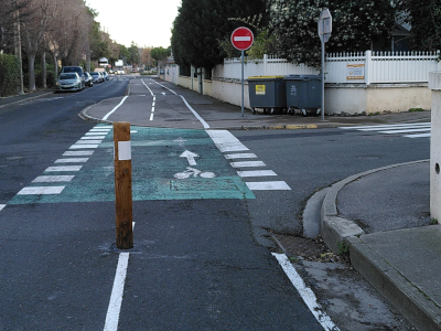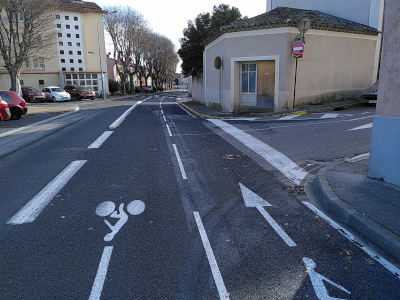Lorsqu’il vient du boulevard du Général De Gaulle, ou de la rue de l’Ancienne Porte de Béziers, un cycliste ne pourra plus rentrer dans l’avenue Elie Sermet comme auparavant. Il aura le choix de continuer et de faire une épingle à cheveux pour rentrer dans la piste cyclable, ou d’emprunter la rue Lakanal, puis la rue Edmond Valentin pour rejoindre la piste. Peu de doute que c’est cette dernière option qui sera privilégiée.